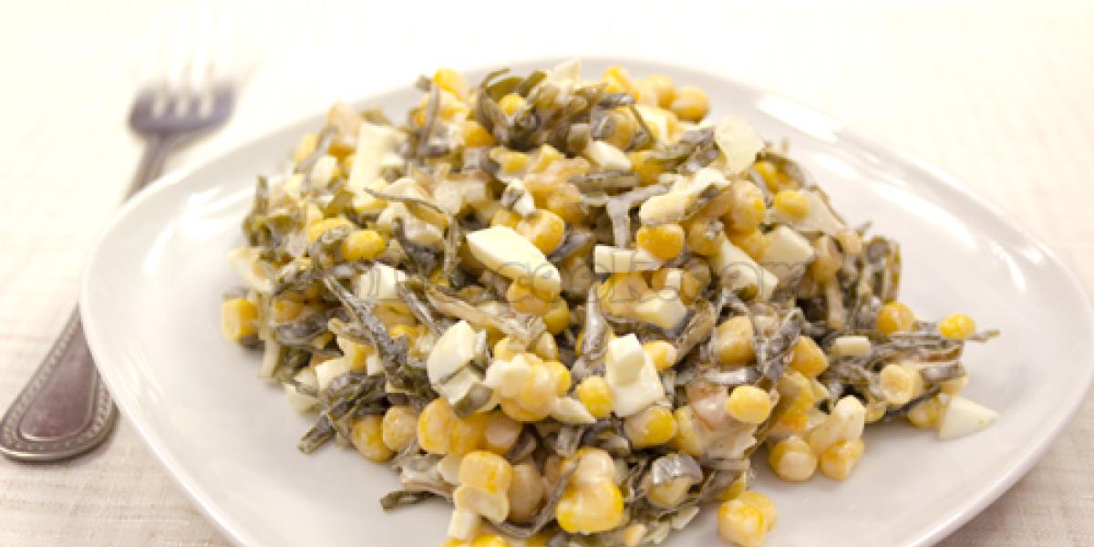 Салат із морської капусти, кукурудзи та яєць