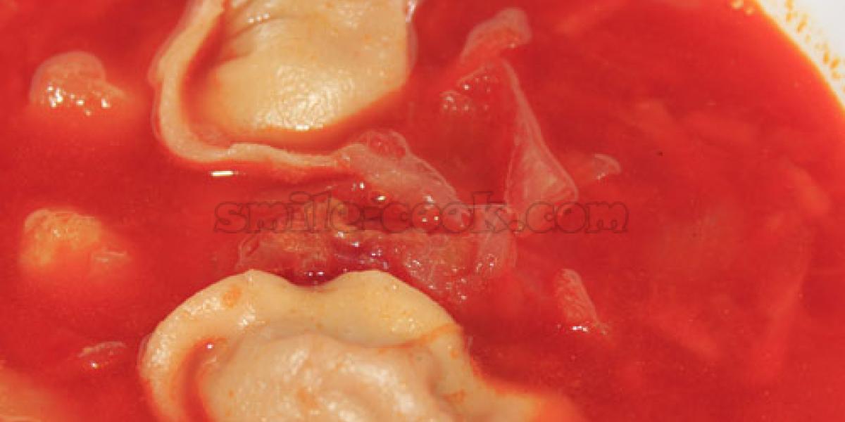Червоний борщ із пельменями