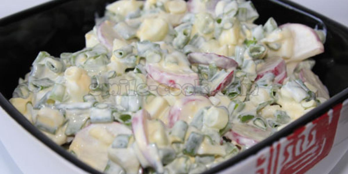 Легкий і смачний салат. Готується елементарно, але посяде гідне місце і на святковому столі. Цей салат можна взяти за основу, додаючи в нього різні інгредієнти, що поєднуються з рибою, на свій смак.