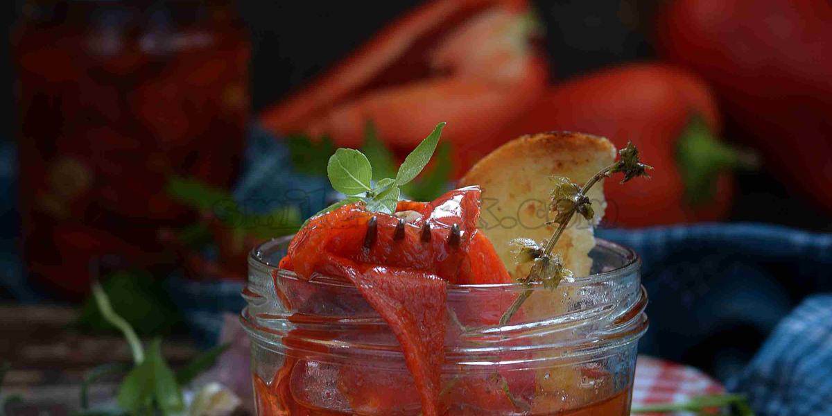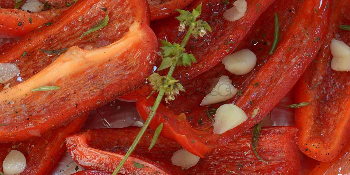 Якщо не ліньки, то очистіть перець від шкірочки, так буде набагато смачніше і ніжніше. Підготовлене філе перцю разом із травами та спеціями (часником) скласти в стерилізовану баночку, додати оцет і залити олією так, щоб вона покрила перець.