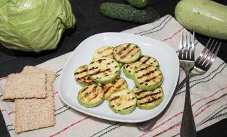 У мене є улюблений рецепт кабачків, які смажаться на пательні. І якщо ви в гонитві за корисним харчуванням все ж не готові відмовитися від смажених продуктів, то пательня-гриль вам на допомогу. Перевага смаження на сковороді-гриль у тому, що жир стікає по реберцях сковороди на дно, а овочі готуються зверху. А в сезон кабачків це взагалі знахідка - нарізав усе, на кілька хвилин замаринував, на сковорідку й овочі готові. Якщо у вас немає сковороди-гриль, то цілком можна приготувати такі кабачки на грилі в духовці, ну або обсмажити на звичайній пательні.