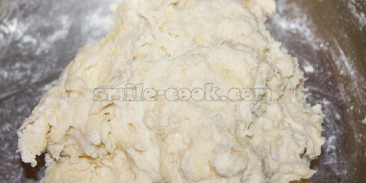 Одновременно продолжайте растягивать тесто вдоль и по бокам, подтыкая края.