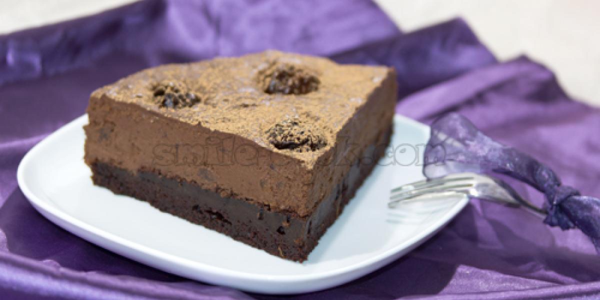 Я б назвала цей торт "дорослим" - він у міру солодкий через додавання гіркого шоколаду, без сиропних просочень і ягід, з лаконічним оформленням, але при цьому абсолютно оксамитовий і багатий на смак. Готується торт досить просто: низ - бісквіт "без заморочок", який після випікання залишається вологим і не потребує просочення, а верх - мус із гіркого шоколаду та вершків. Доповнює смак торта чорнослив, замочений у чаї зі смаком бергамоту, що нагадує просто соковиті сливи.