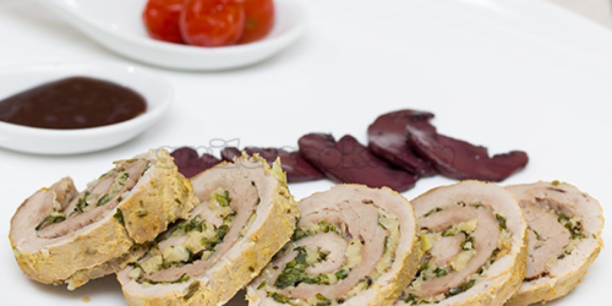 Рулет зі свинячої вирізки з горіхами та ароматними травами