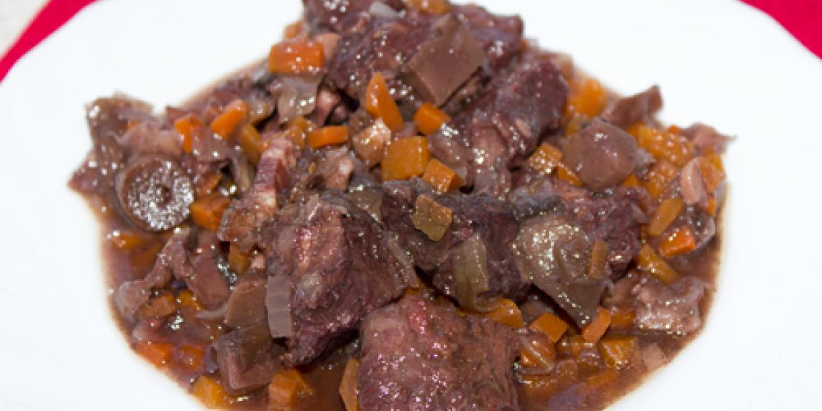 Спрощений варіант знаменитої французької страви - класичне поєднання м'яса та вина. У процесі тушкування вино віддає м'ясу всю багату гаму смаків, і яловичина виходить м'якою, ароматною та соковитою. При цьому страва готується дуже просто і досить швидко.