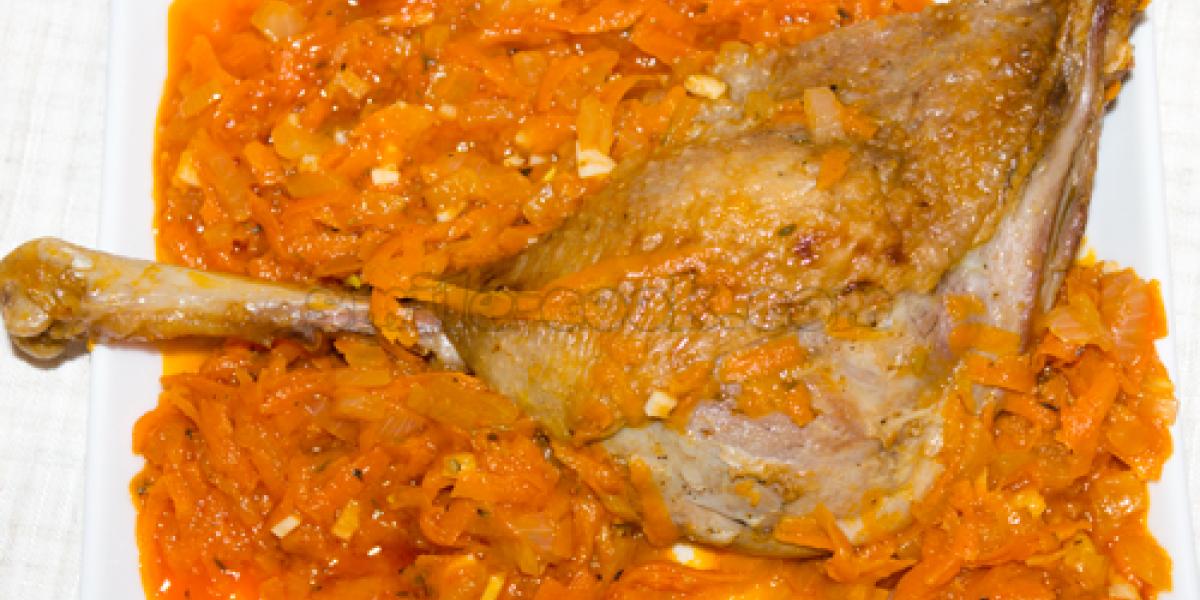 Ніжне соковите м'ясо гуски, доповнене ароматними овочами. Дуже смачна, хоча й доволі проста страва. Щоб її приготувати, особливих умінь не потрібно, але результат неодмінно здивує та потішить.