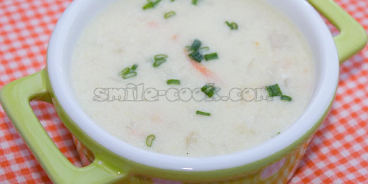 Цей суп готують у західній частині України. Суп виходить ситним і густим, із приємним вершковим смаком. Цей рецепт передбачає приготування без м'яса, але, за бажання, можна зварити суп на м'ясному бульйоні. Рецептом супу поділилася зі мною подруга Мирослава, за що велике їй спасибі!