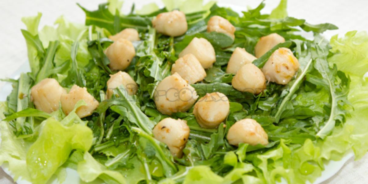Смажені морські гребінці із зеленим салатом