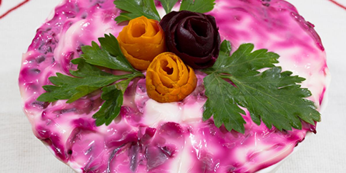 Традиційний, але улюблений усіма салат з оселедця та відварених овочів. Просто і смачно.