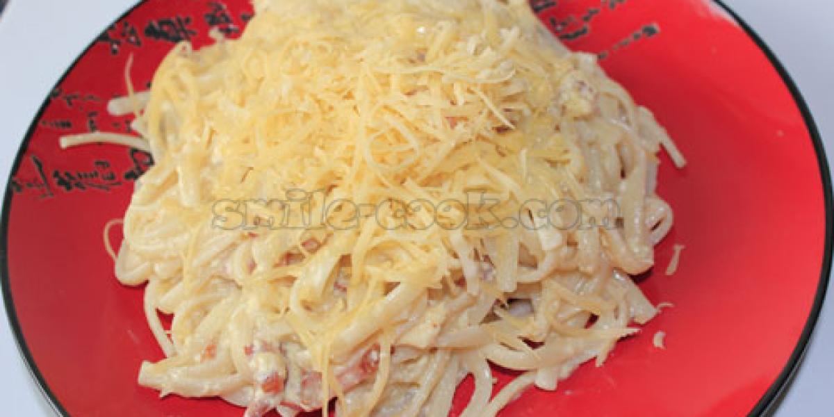 Цю смачну та вишукану страву італійської кухні можна приготувати вдома самостійно. Рецепт і приготування прості й не потребують багато часу. Соус до спагеті виходить смачний, насичено вершковий, добре підходить до макаронних виробів.