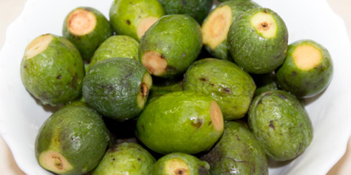 Фейхоа ретельно вимийте і видаліть ороговілі чашолистки.