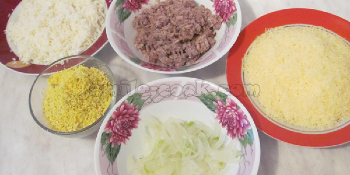Раджу заздалегідь приготувати всі компоненти, а за тим по черзі викладати в салатницю.